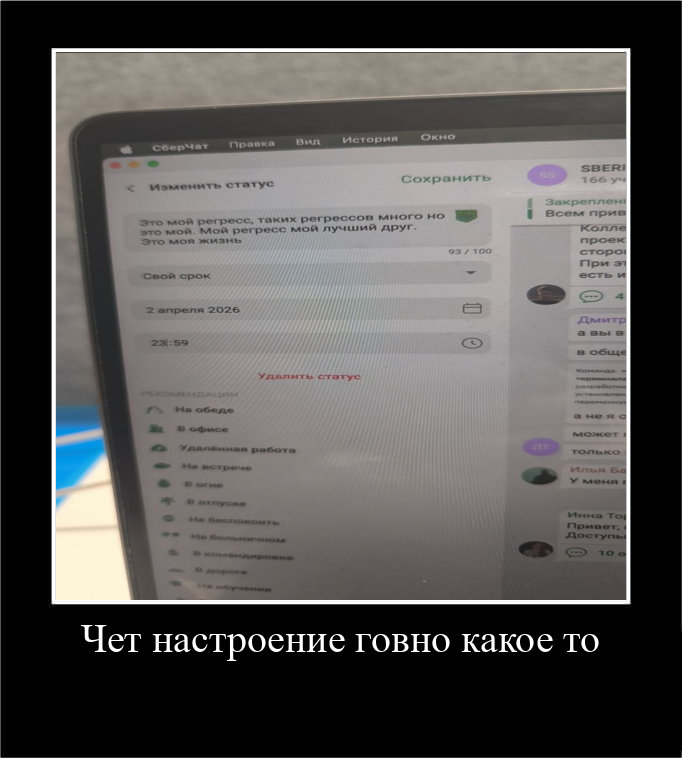 ocr: Bun История & сверг Правка e SBERI < Изменить статус Сохранить Закреплен! Это мой регресс, таких регрессов много HO a | Всем прив это мой. Мой регресс мой лучший друг. Это моя жизнь Kone проек ль сторо ‘Ceo срок = При a1 есть и Фо: 2 апреля 2026 | е Дмитр авыв