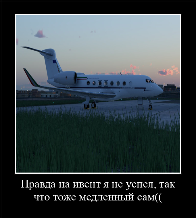 визуальные теги: a small plane is parked on the runway. выбран текст: Правда на ивент я не успел, так что тоже медленный сам((