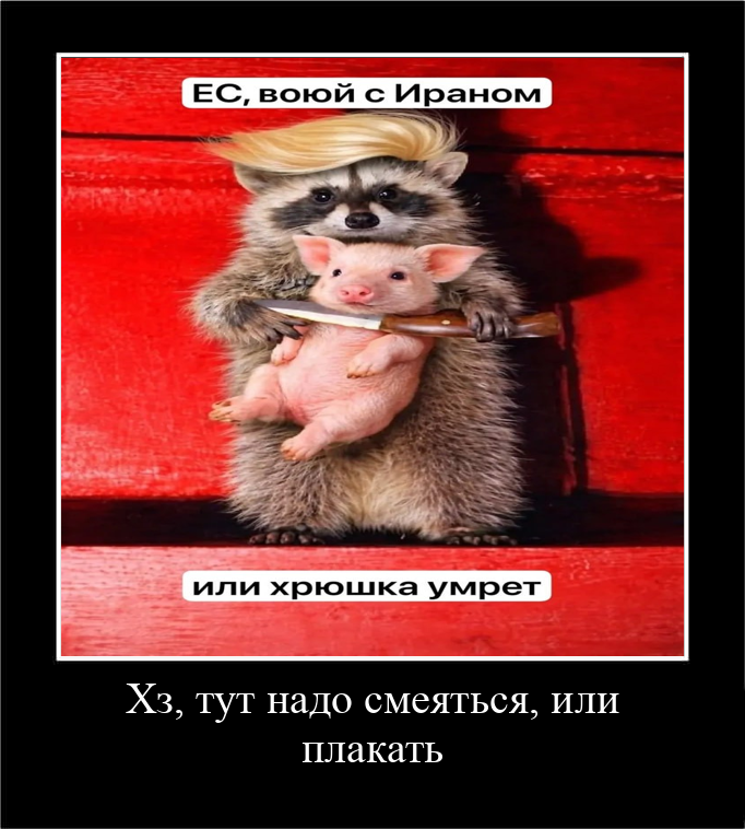 визуальные теги: a small hedge with a tooth in its mouth. OCR: ЕС, воюй с Ираном. выбран текст: Хз, тут надо смеяться, или плакать