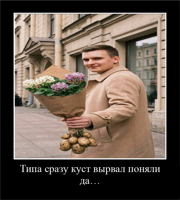 визуальные теги: человек, цветы. выбран текст: Типа сразу куст вырвал поняли да…